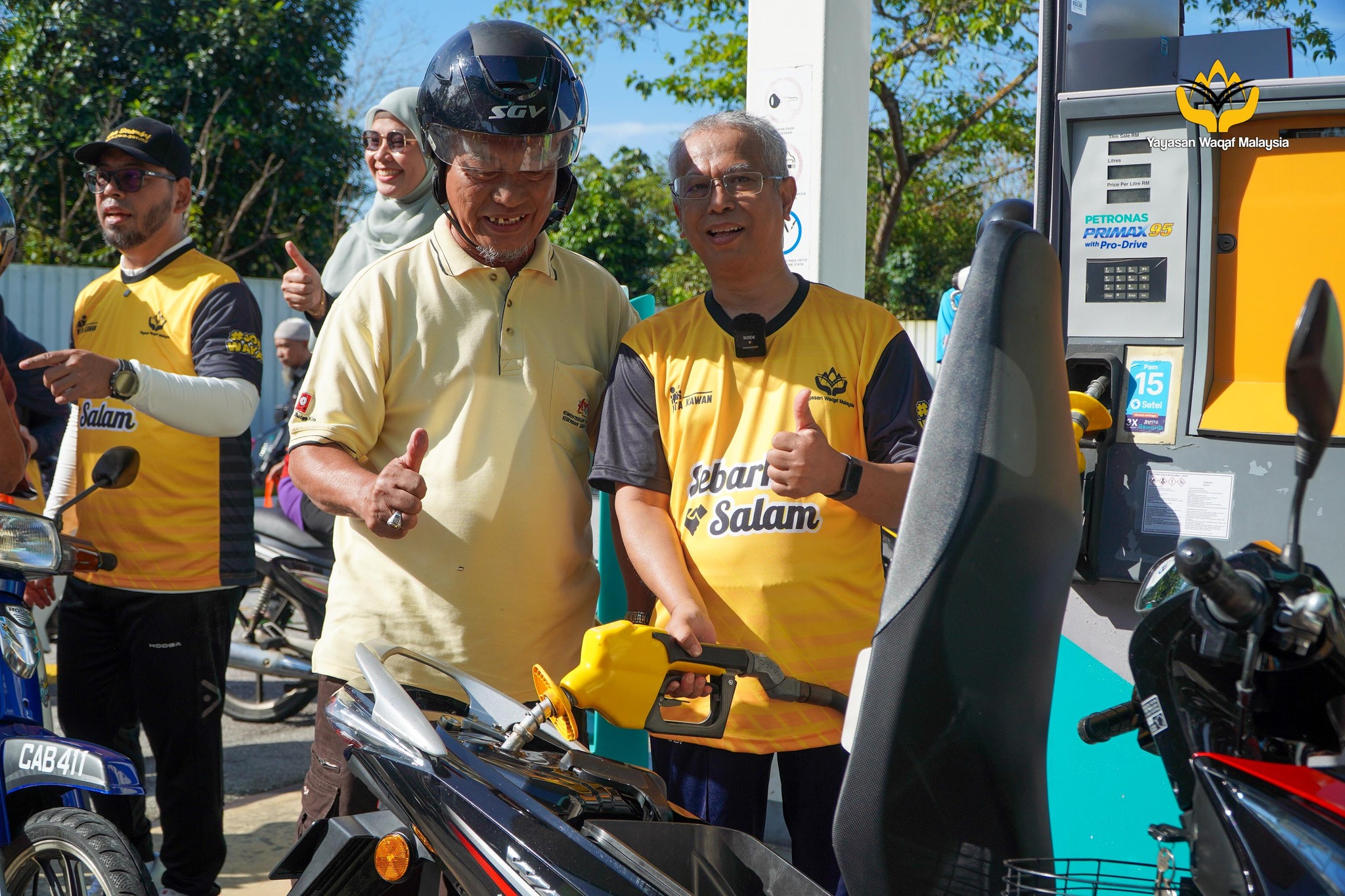 Rombongan kayuhan kemudiannya ke Stesen Petronas Behrang 2020 untuk meninjau pelaksanaan pemberian minyak petrol percuma kepada penunggang motosikal. Kira-kira sebanyak 630 buah motor telah menerima manfaat inisiatif YWM ini.