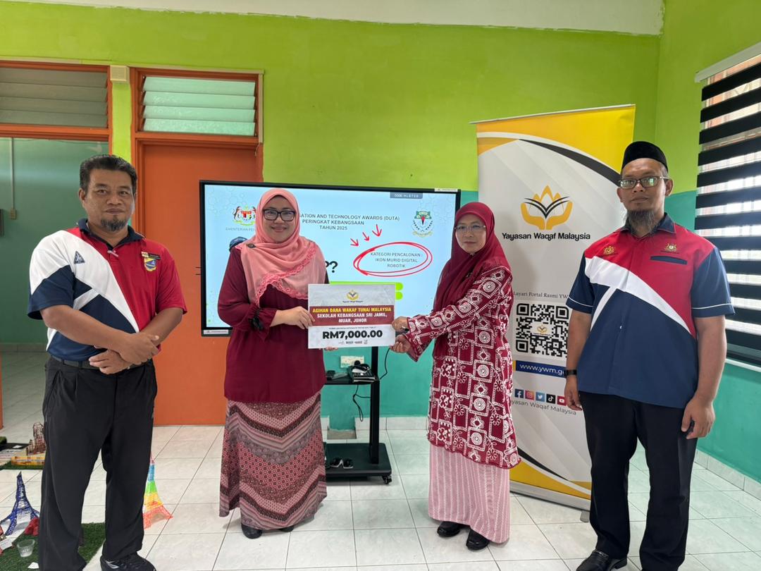 17-03-2026Muar, 17 Mac 2026 - Yayasan Waqaf Malaysia (YWM) telah mengadakan lawatan ke beberapa buah sekolah di Melaka dan Johor bagi menyampaikan sumbangan wakaf yang bertujuan memperkasa kemudahan pembelajaran berasaskan teknologi serta menyokong pembangunan pendidikan selaras dengan keperluan semasa.