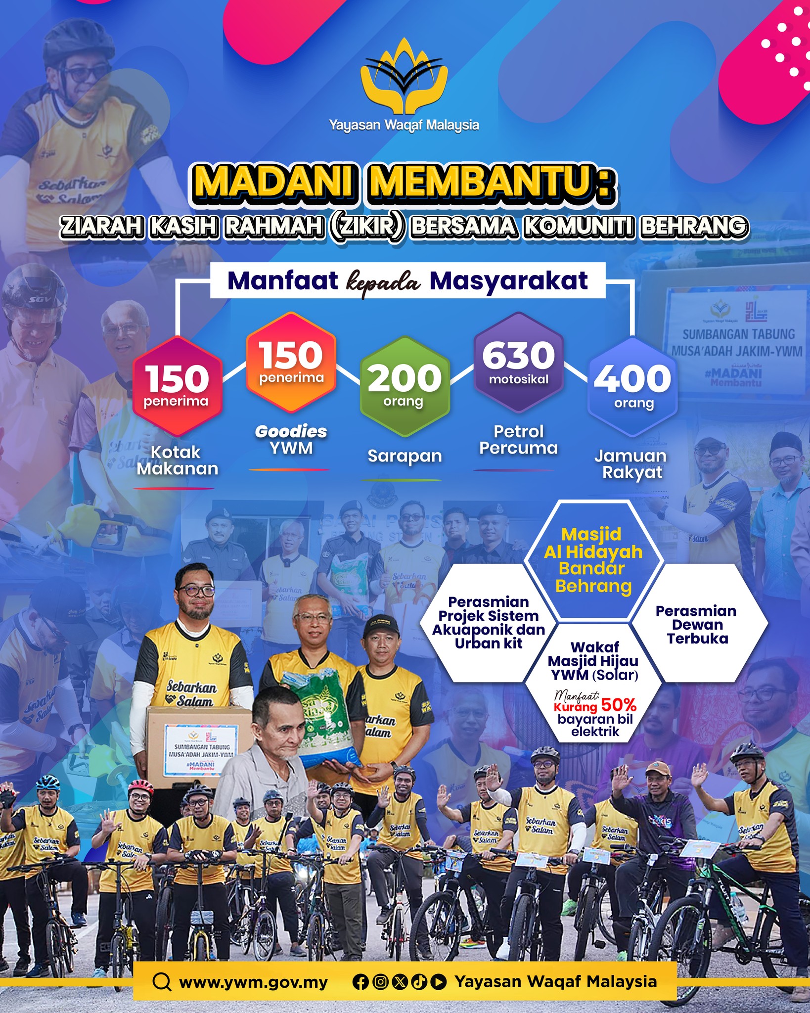 07-02-2026Behrang, 7 Februari 2026 - Yayasan Waqaf Malaysia (YWM) telah menganjurkan Program MADANI Membantu: Ziarah Kasih Rahmah (ZIKIR) 2026 yang berlangsung di sekitar Bandar Behrang. Program ini merupakan manifestasi komitmen Kerajaan MADANI dalam menyantuni masyarakat secara inklusif berteraskan nilai ihsan.